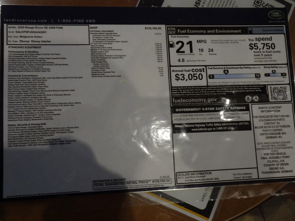 New 2025Range Rover SUV SE