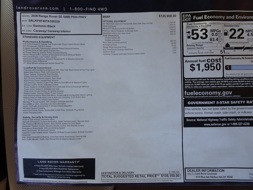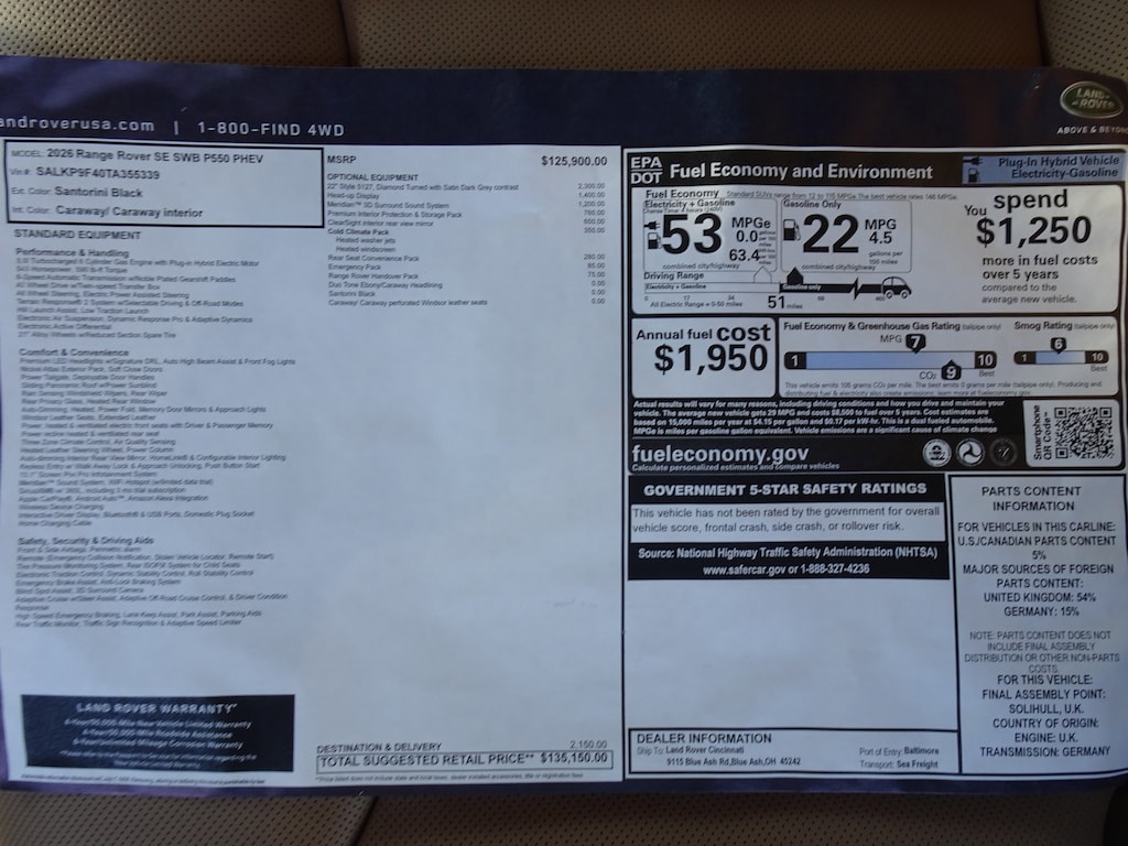 New 2026 Range Rover SUV SE Phev